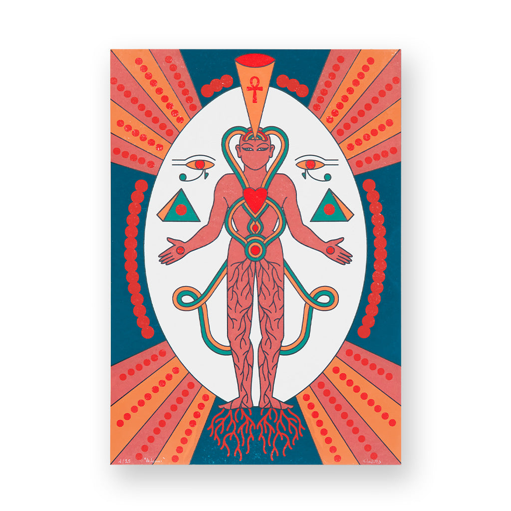 “Adonai” represents the body as a channel.Feet grounded, heart expanding, mind open.The Ankh, like an antenna, opens a portal to receive messages.Flow, Presence, Spirit.