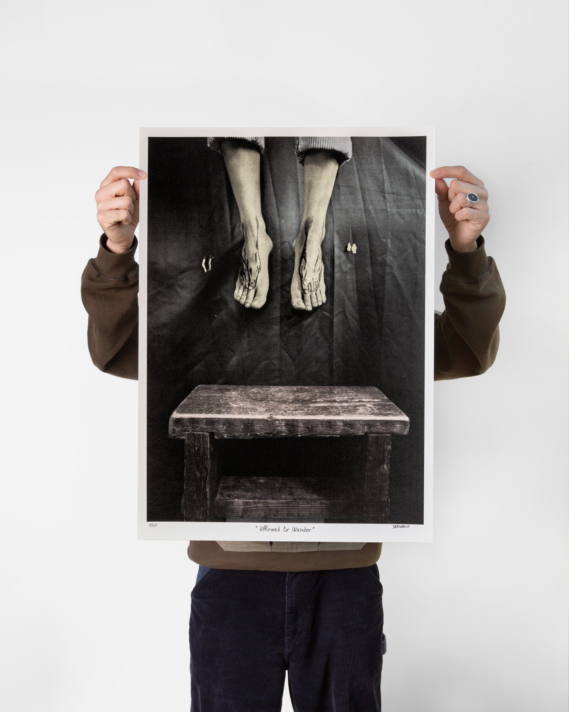 In his atelier in Hackney Wick, Servadio creates new projects which interconnect the different practices of tattooing, painting, printmaking, photography, and performance art. Merging these diciplines, feeding them back into one another, he creates a unique universe where he is able to explore and describe the human condition and his environment.