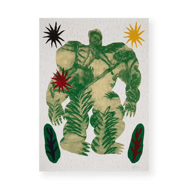 A visceral dialogue, where the giant — embodying an untamed inner nature — becomes a metaphor for the eternal struggle between strength and wilderness: man against an indomitable forest that relentlessly advances and engulfs. It is at once a warning, a celebration, and a surrender before the overwhelming force of nature.