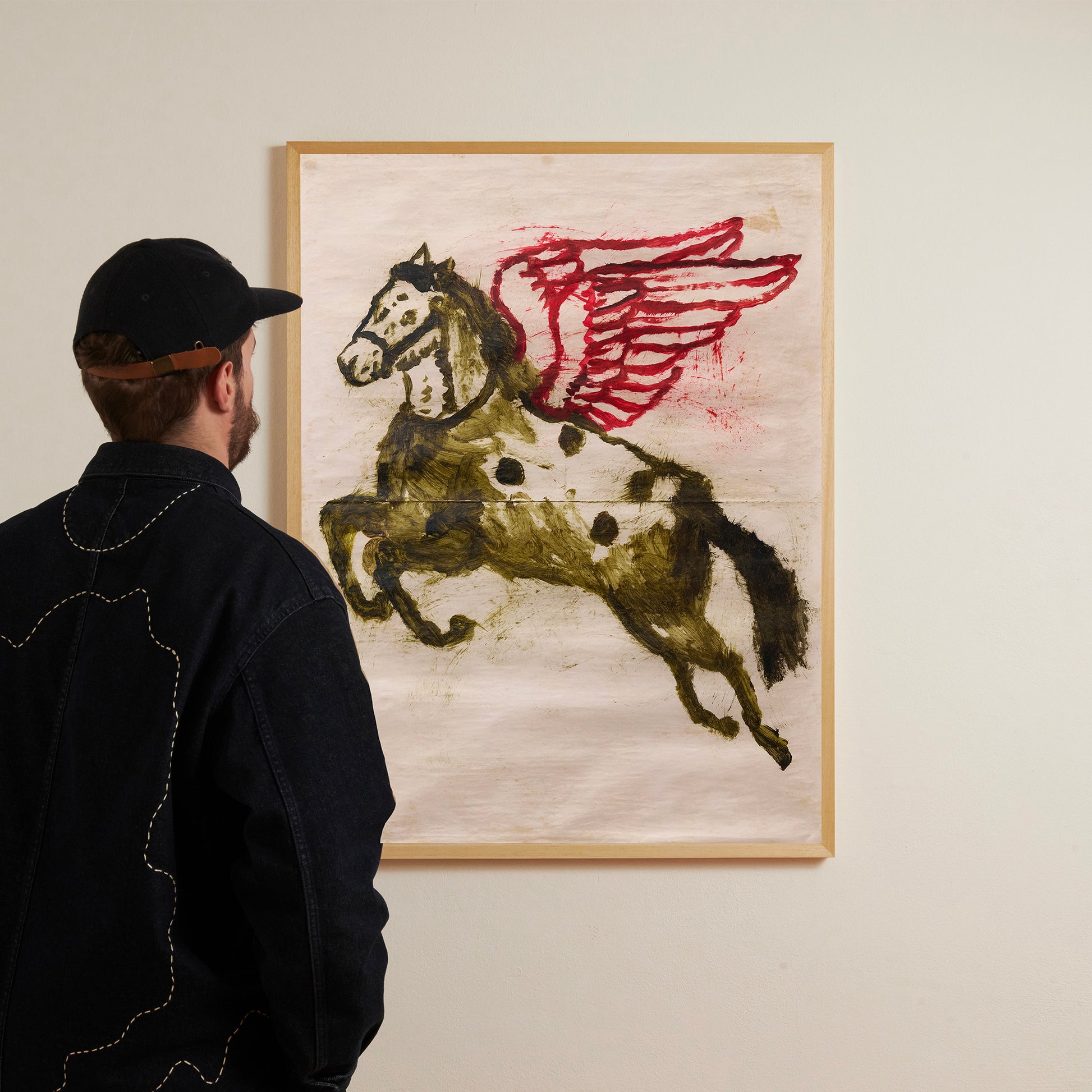 Since 2005, he has dedicated himself to researching his language through different mediums, painting, drawing, and installation. “I am nature,” says the artist, and over the years his work has focused on the visceral relationship between the human being, nature, and the animal world, an interweaving that often results in bizarre anthropomorphic creatures bordering on the grotesque. His painting deteriorates and envelops a wide variety of media.