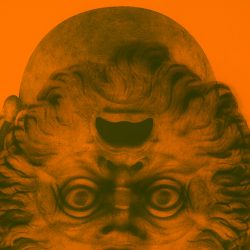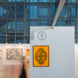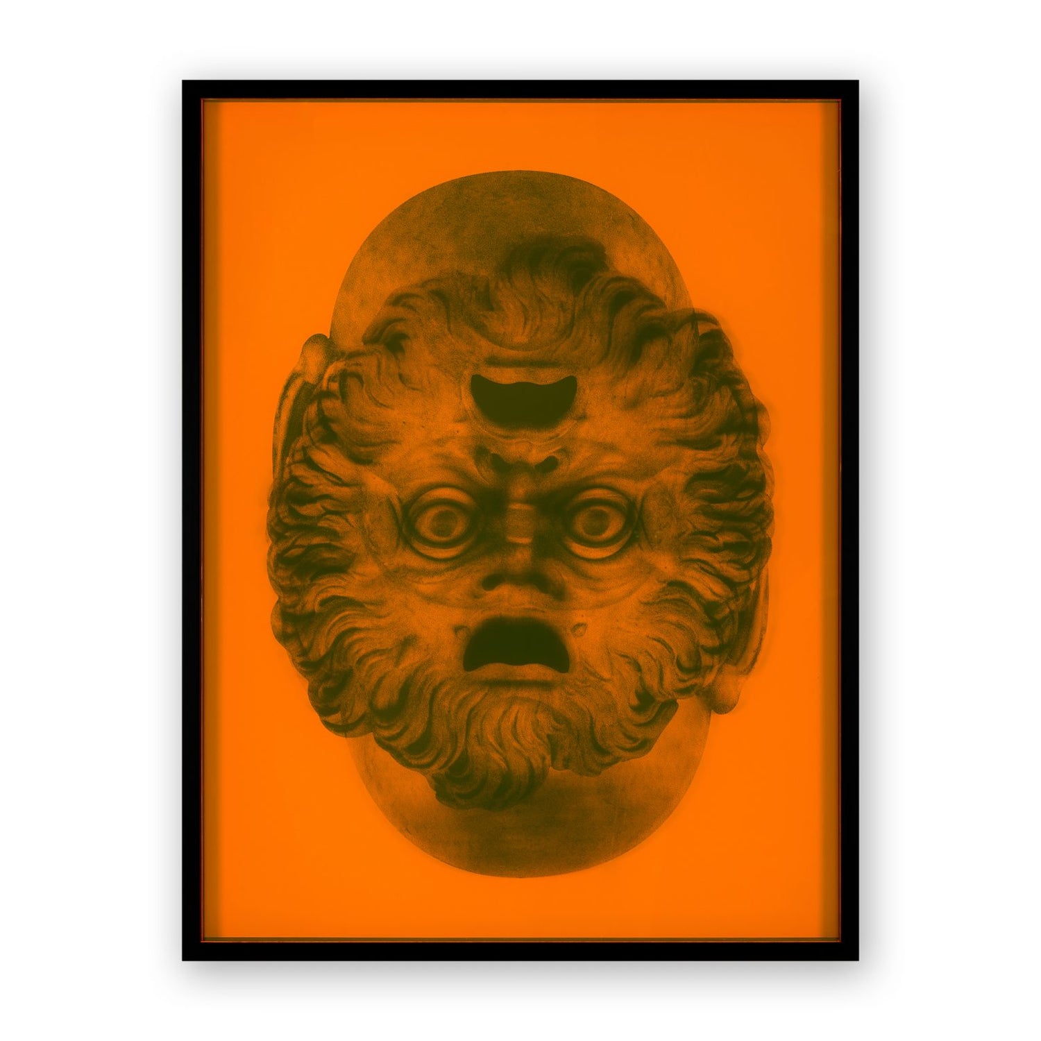 The classical busts have been screen printed on two distinct and superimposed supports: paper and glass.