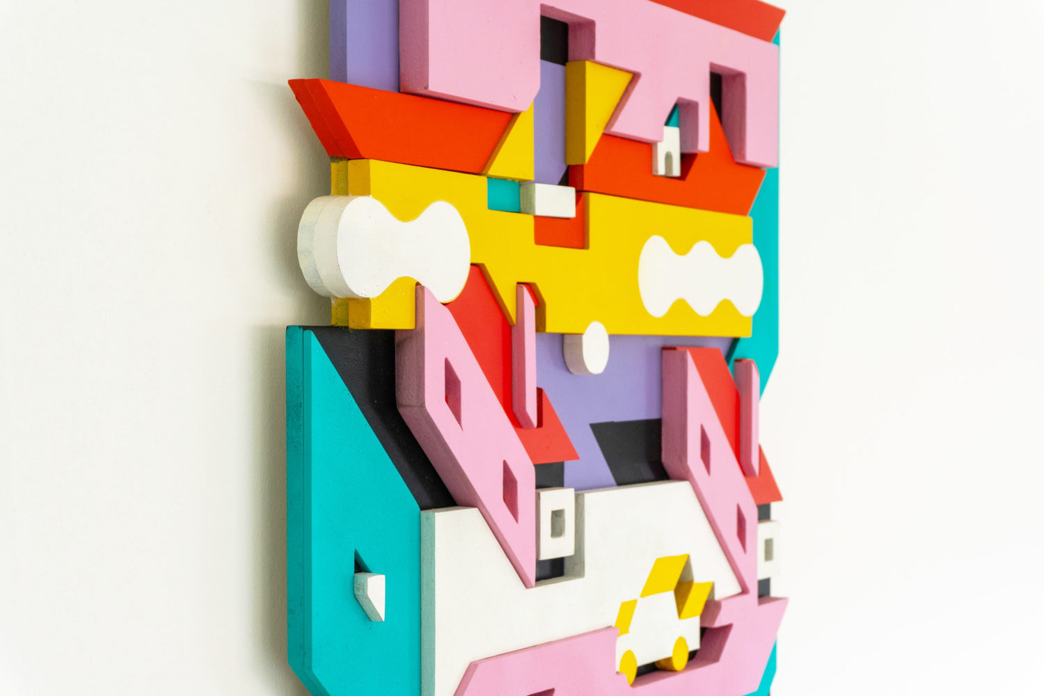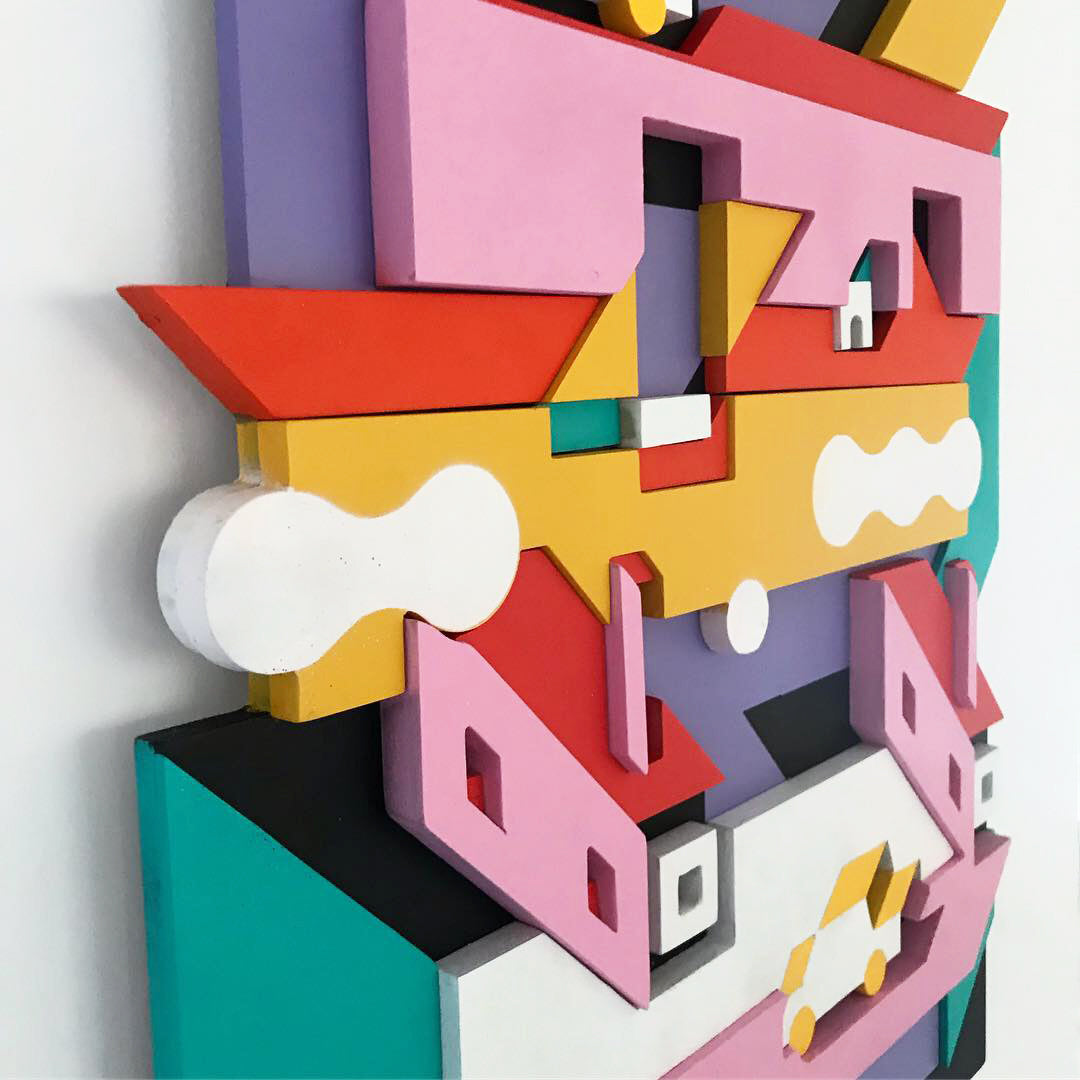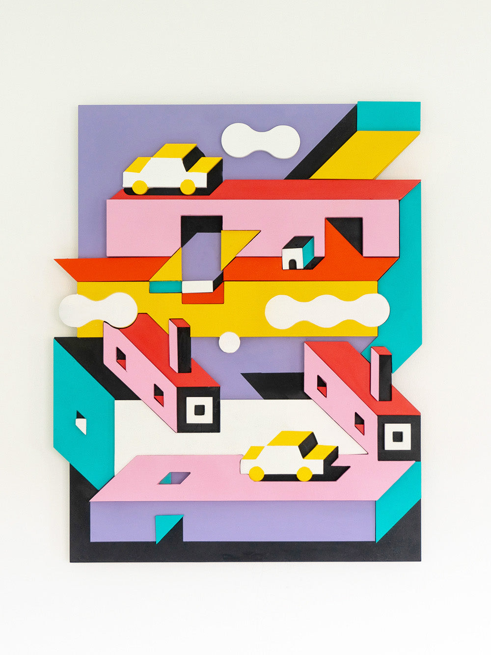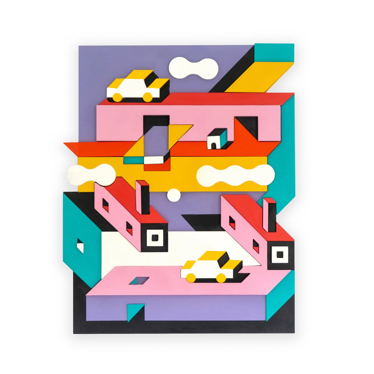 The spatial worlds of Johan Moorman are reminiscent of classic arcade games, the works of Dutch graphic artist Escher, and old Lego (Danish toys) catalogues. Moorman’s graphics and murals are undeniably Anti-Design, yet elegant in color, lines, and design language. Johan Moorman (1979) finds inspiration in retro-futuristic images, architecture, music, and technological innovation: Moorman was the one to design the poster for the legendary 2013 Kraftwerk 3D concert series in former technology museum Evoluon in Eindhoven, The Netherlands. Johan Moorman started his career as a graffiti artist from the Dutch ‘city of light’. He likes to explore and didn’t stop experimenting, neither in style nor multimedia use. He grew up in a city built on technology and design, and later graduated from the renowned Willem de Kooning Academy in Rotterdam, The Netherlands. The artist is influenced by De Stijl (neoplasticism), Pop art, and the Memphis Group / Postmodernism. Time seems to have frozen in some of his works. They feel like playgrounds that perfectly balance objects and shapes - an adventurous world that needs to be explored.