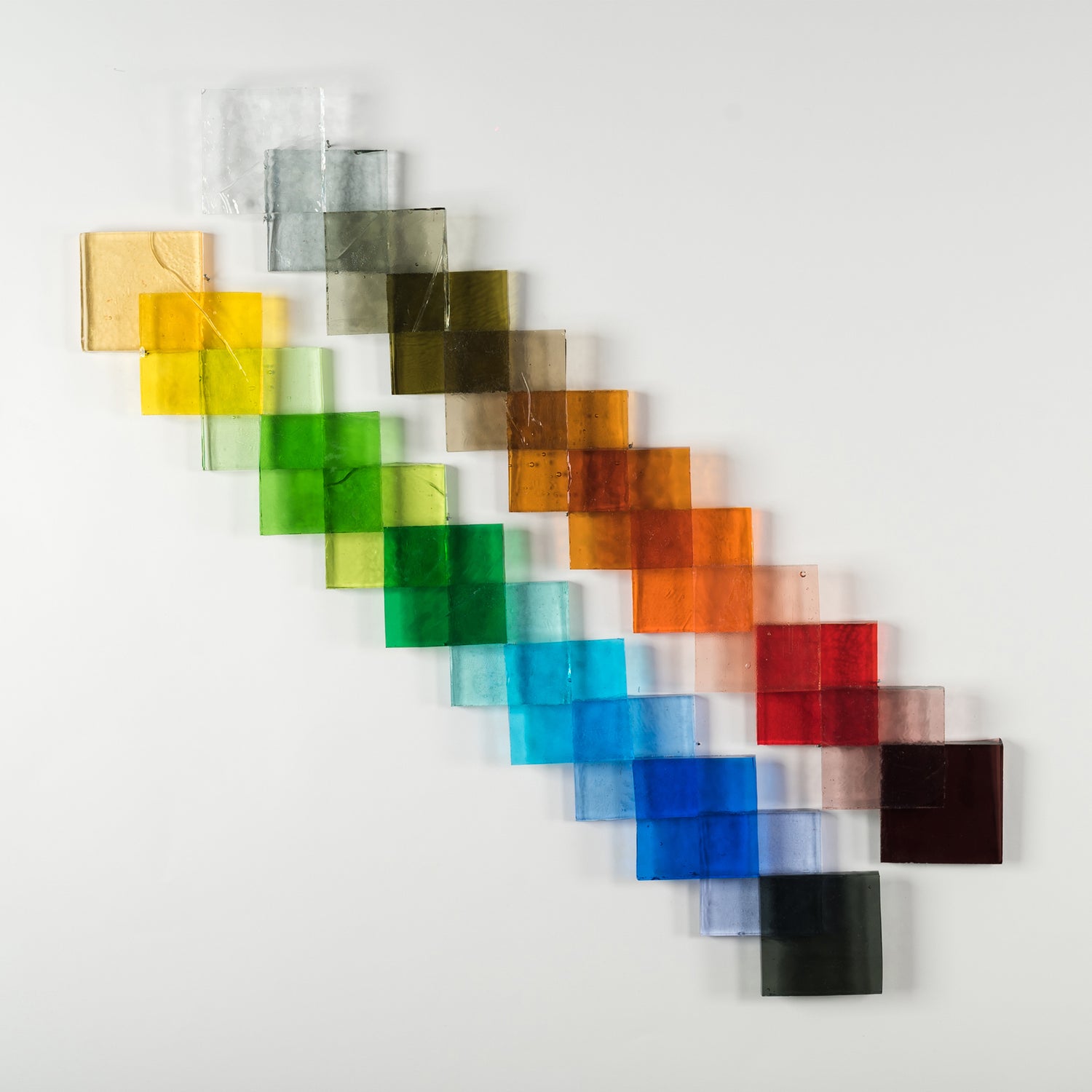 In 2012 Alberonero started focus on the study of color’s perception and on the research of a code that can minimize the visual language. For six years he intervened in the public space by painting sequences of colors ordered in a geometric grid, as instrument of investigation of the connection between mathematics, poetry and sensation.