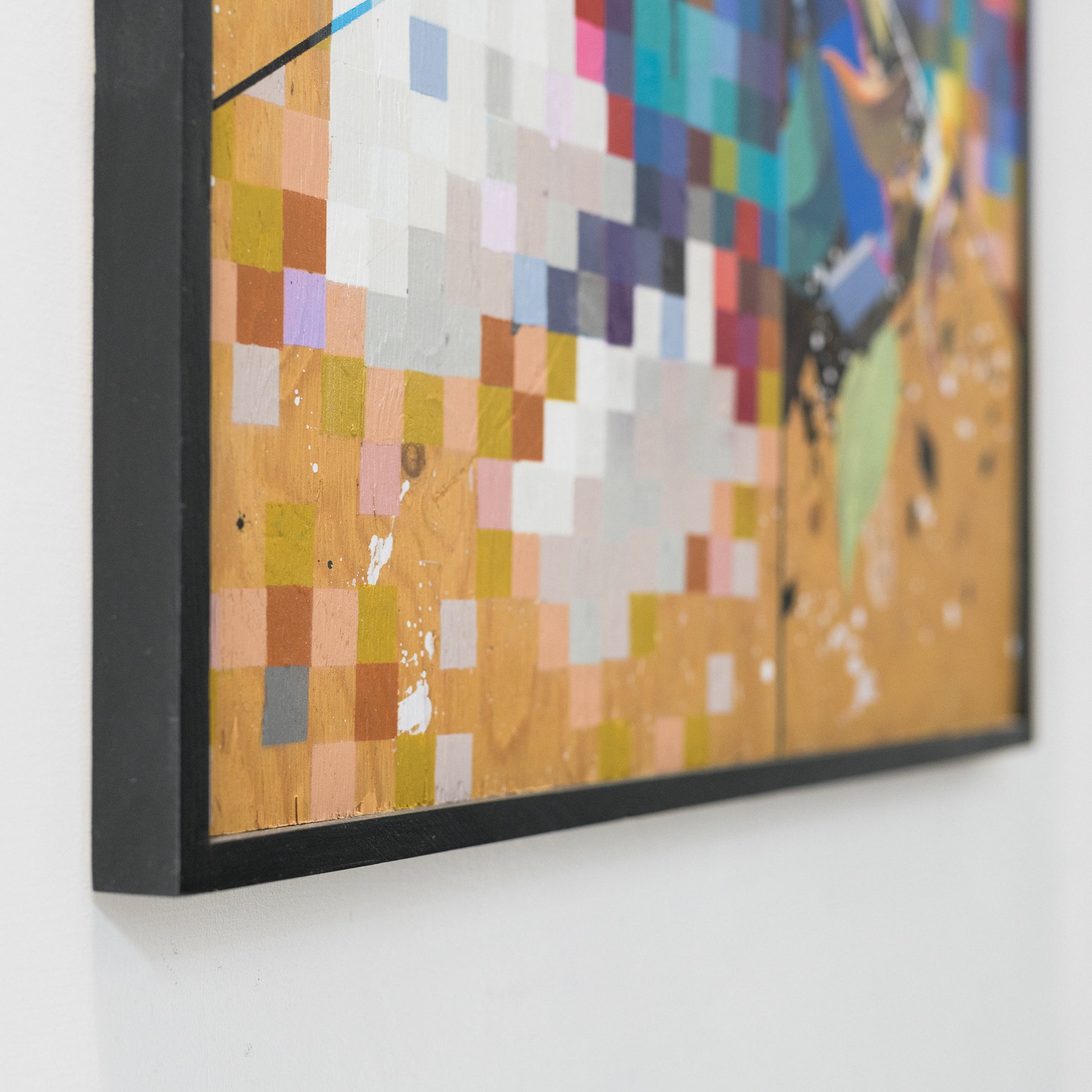 Acrylic, marker and spray paint on wooden panel