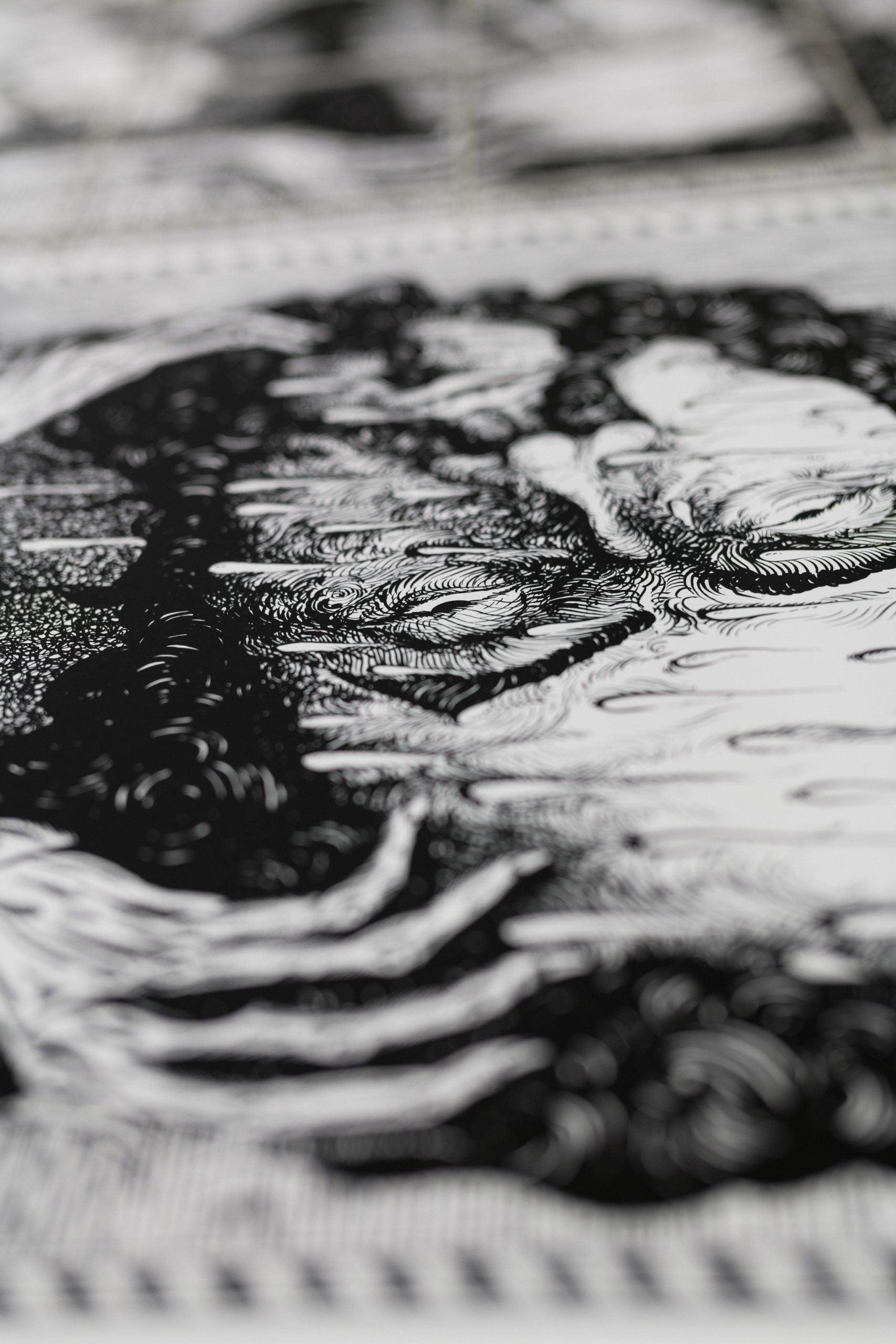 Ruco was born in Rome in 1991 and he has been drawing since he can remember. During high school, he began to take an interest in the world of tattooing and approached thisjob as soon as he finished school. Ruco began tattooing in 2012 in Florence, while studying Art Printing Techniques at the Academy of Fine Arts and he began receiving invitations as a guest in several studios around the world: Mexico, Israel, Honk Hong... His figurative style is the result of numerous influences from the most different fields. The main thread is related to the taste for the grotesque. Passionate about masks, he made them a source of research, producing them by hand. In addition to his own tattoo studio in the heart of Rome, Ruco pursues his other passions in a small private studio where he finds his space to create masks and costumes, model clay, paint, and so on. In 2018 Ruco brought out the research project related to the theme of the tattoo ritual "STILLIFE BRÜCKE" in collaboration with Servadio: 4-handed sessions in which the surrounding environment becomes the subject of the tattoo, whether it is a predefined and static composition or a changing and dynamic situation. In this way, the subject is not previously decided nor born from the imagination of the artists but represents what you have in front of your eyes during the ritual. Ph. Credits: Shyla Nicodemi