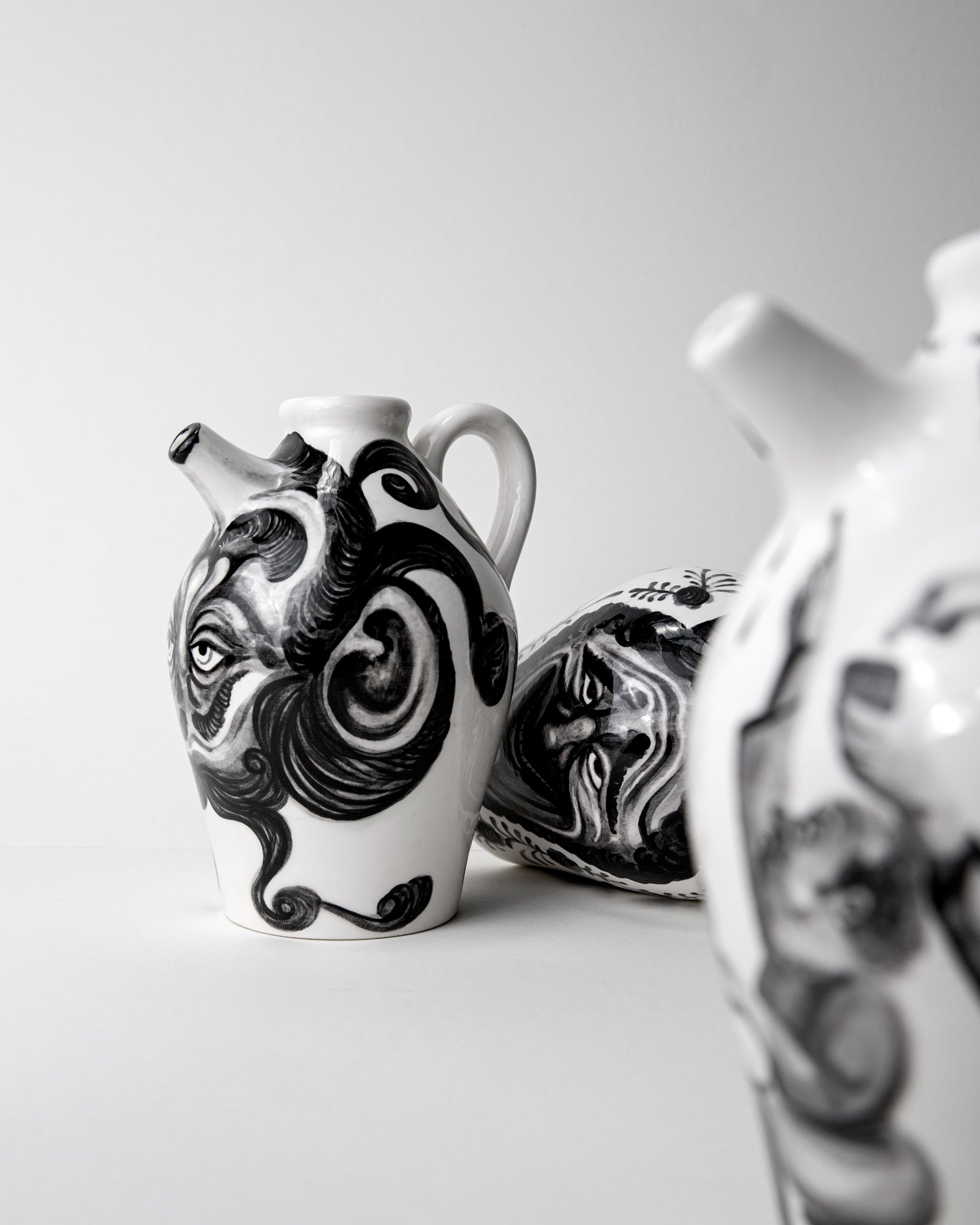 In the “Grotesque” project, the visions and skills of the design studio and the ones of the Italian artist and tattoo artist merge, reinterpreting together an object that has always been part of everyone’s everyday life: the jug.