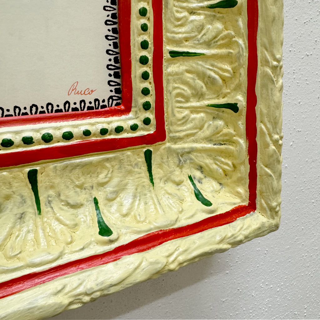 Hand-painted with acrylics on a restored vintage frame