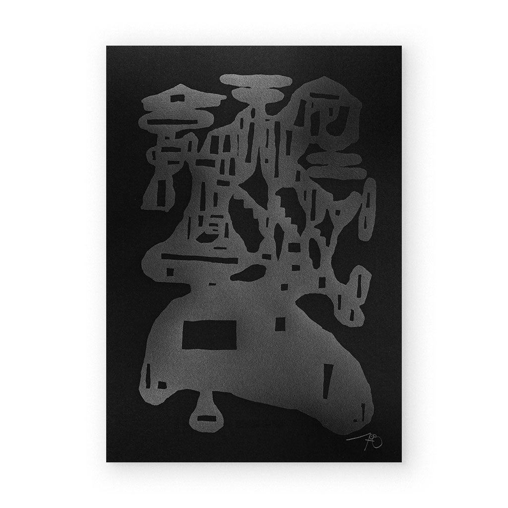 108 (Guido Bisagni) was born in Alessandria in 1978. He started painting approaching traditional graffiti, using several pseudonyms. At the end of the 90s, he has evolved both formally and conceptually and he becomes one of the first European post-graffiti artists working with abstract forms, painting large and mysterious figures that invade abandoned spaces. He was the first writer to use numbers instead of letters for his name. His work has appeared on the streets of Milan, Paris, London, Berlin, New York City, and San Francisco... It was his firm intention to make visual chaos, working also with 3D objects, sounds, and installations. In 2004 he was invited to Paris for Nusign 2.4 One of the first international exhibitions of street art and in 2005 he took part to the Urban Edge Show in Milan. Finally, in 2006 he graduated from the Polytechnic of Milan following design courses. in 2007 he was invited to join the project called Walls inside the Biennale di Venezia. In March 2008 he flew to Los Angeles with Eltono, Dem, Microbo, and other artists to represent Europe in the U.S.A. during the Nomadaz exhibition."As the street-art boom gained momentum during the early years of the twenty-first century, however, 108 found himself becoming increasingly dismayed by the often banal route it appeared to be taking. In contradistinction, he started to re-explore the abandoned buildings and factories in Alessandria that he had frequented during his youth. The combination of stark concrete walls and rationalist architecture he encountered there, together with the practical necessity of producing something both cheaply and quickly (a factor that had also inspired his use of adhesive stickers), led to the next stage in his artistic journey, what we might call 108’s “black period.”(Rafael Schacter in His "World Atlas of Street Art and Graffiti") Whether it be within the confines of a small room in the abandoned monastery, where the large triangular constructions are most effective and have the effect of warping and playing with the room’s dimensions as the viewer attempts to back away and comprehend the pieces, or as a surreal floating void on a wall beside a busy road. Colors appear again like small pieces that sleep inside the black. 108 collects many solo exhibitions around Italy and Europe, he took part in many of the contemporary festivals and exhibitions like the first Biennale of Urban Art in Moscow (2014) or Mapping the City at the Somerset house of London (2015).