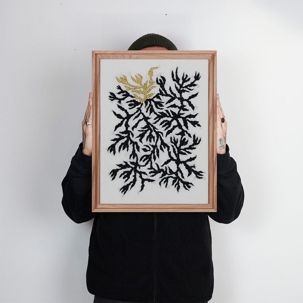 Rincen grew up in a countryside commune and grew up with Tibetan monks in Tuscany. After graduating in Visual Anthropology, she spent several years traveling and collecting fabrics and antique objects. While working as a costume designer and props maker on ‘Ships of Fools,’ a sailing theatre company that traveled the world’s far-flung corners, she started her first experiments in textile art and tattooing. Living in London for many years, she developed an interest in other forms of art, thanks to the exchange with the international scene of DIY artists, performers, and musicians in the community of Hackney Wick. The body of work is mainly a dialogue between tattooing and embroidery, from paper to skin to fabric. Her research and production are focused and inspired by universal archetypes, archeological fantasies, past and present storytelling, and uncommon plus imaginary ways humans have created. She currently lives between the Southern coast of the UK and Tuscany, Italy.