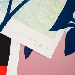 In an endless virtuosity, the series consists of nine unique screenprints and monotype on fabric works, as well as two series of limited edition prints on paper.