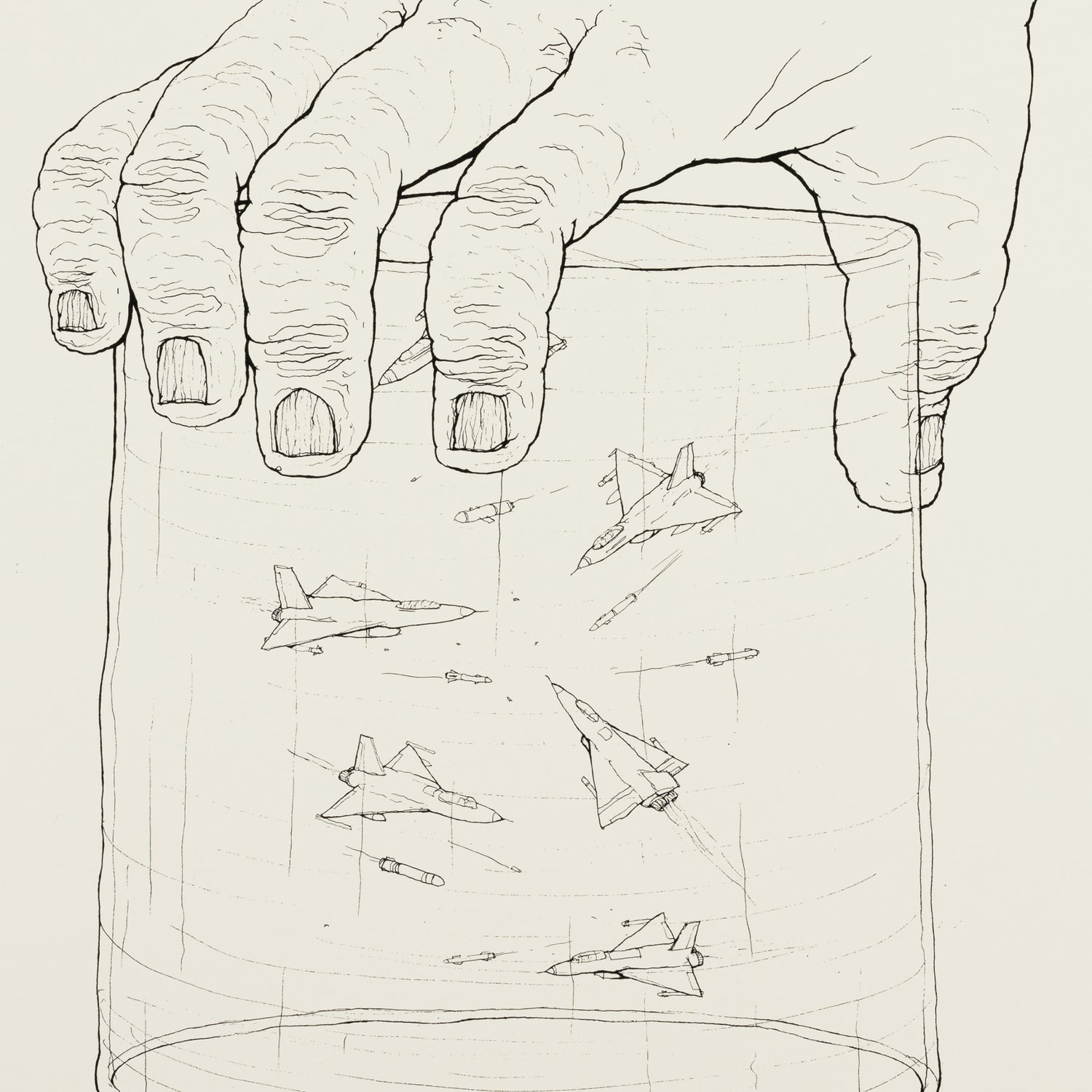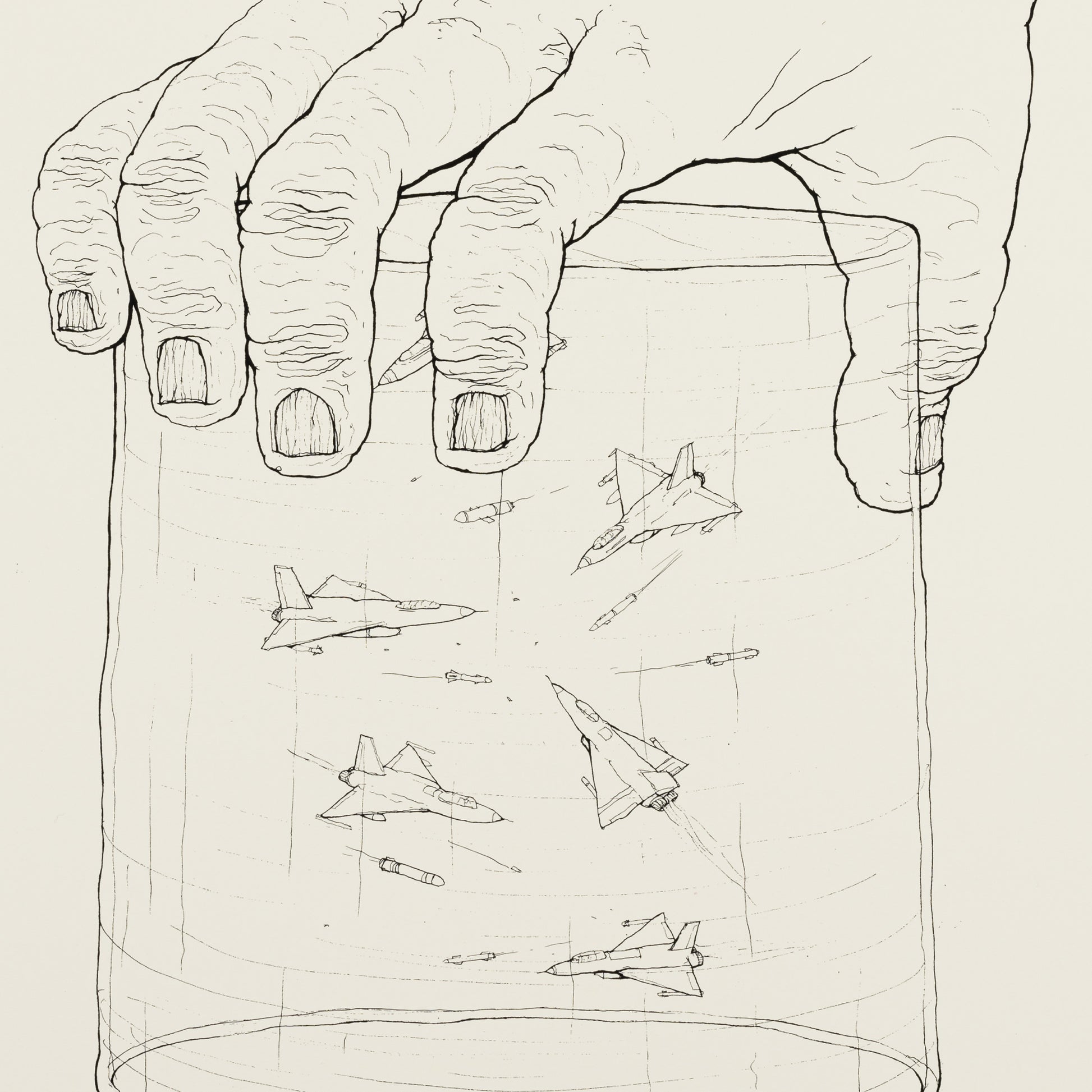 The “Gun” print tells about air pollution by large industries, chimneys like parts of large guns contribute to hurting the sky every day.