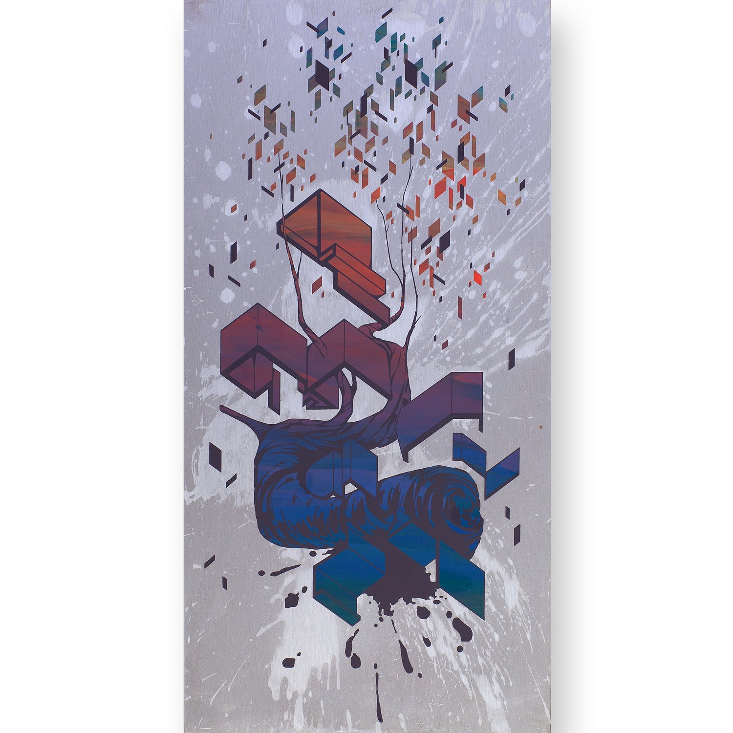 Natural fight by Etnik is a hand-finished screen print on aluminium treated with acid realized in collaboration with 56 Fili for his solo exhibition “Gravità” on show at Galleria Varsi from January 31st to March 15th, 2015.
