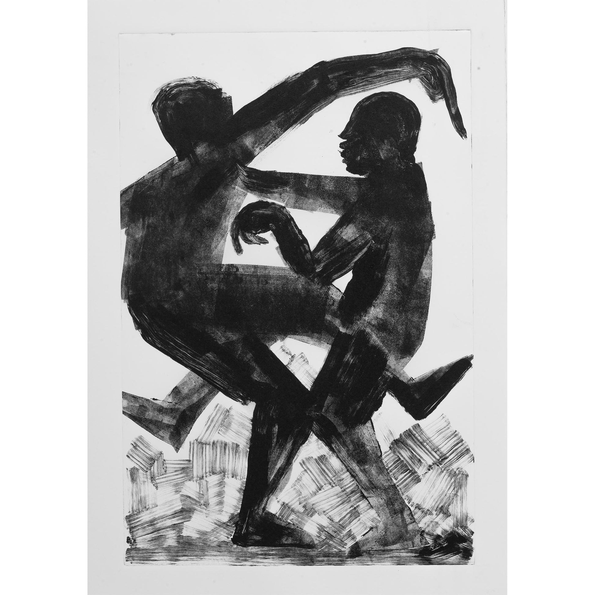 Ombre Danzanti by Run is a monotype print realized for the collective exhibition “Colera”, together with Borondo, Canemorto and Servadio, on show at Galleria Varsi from March 25th to April 23rd, 2017.