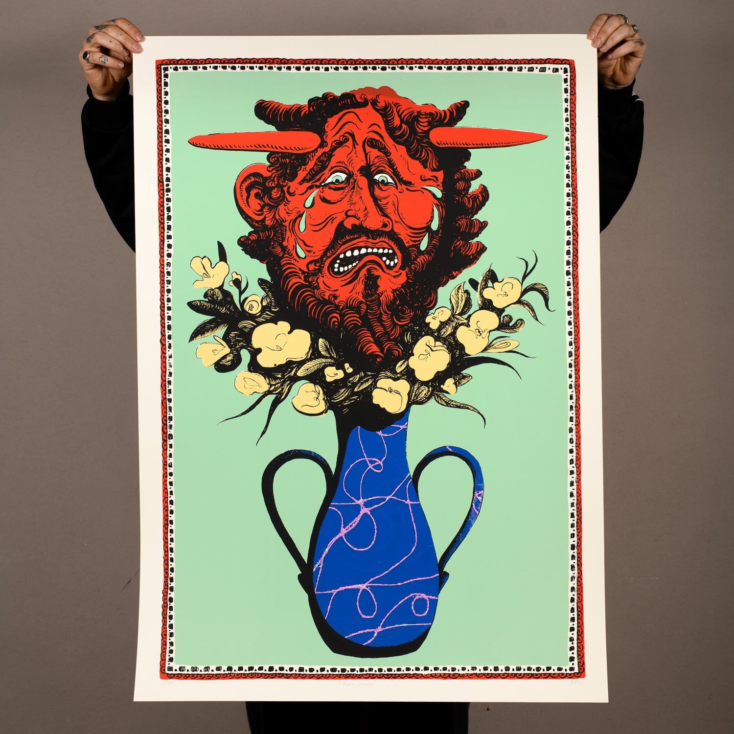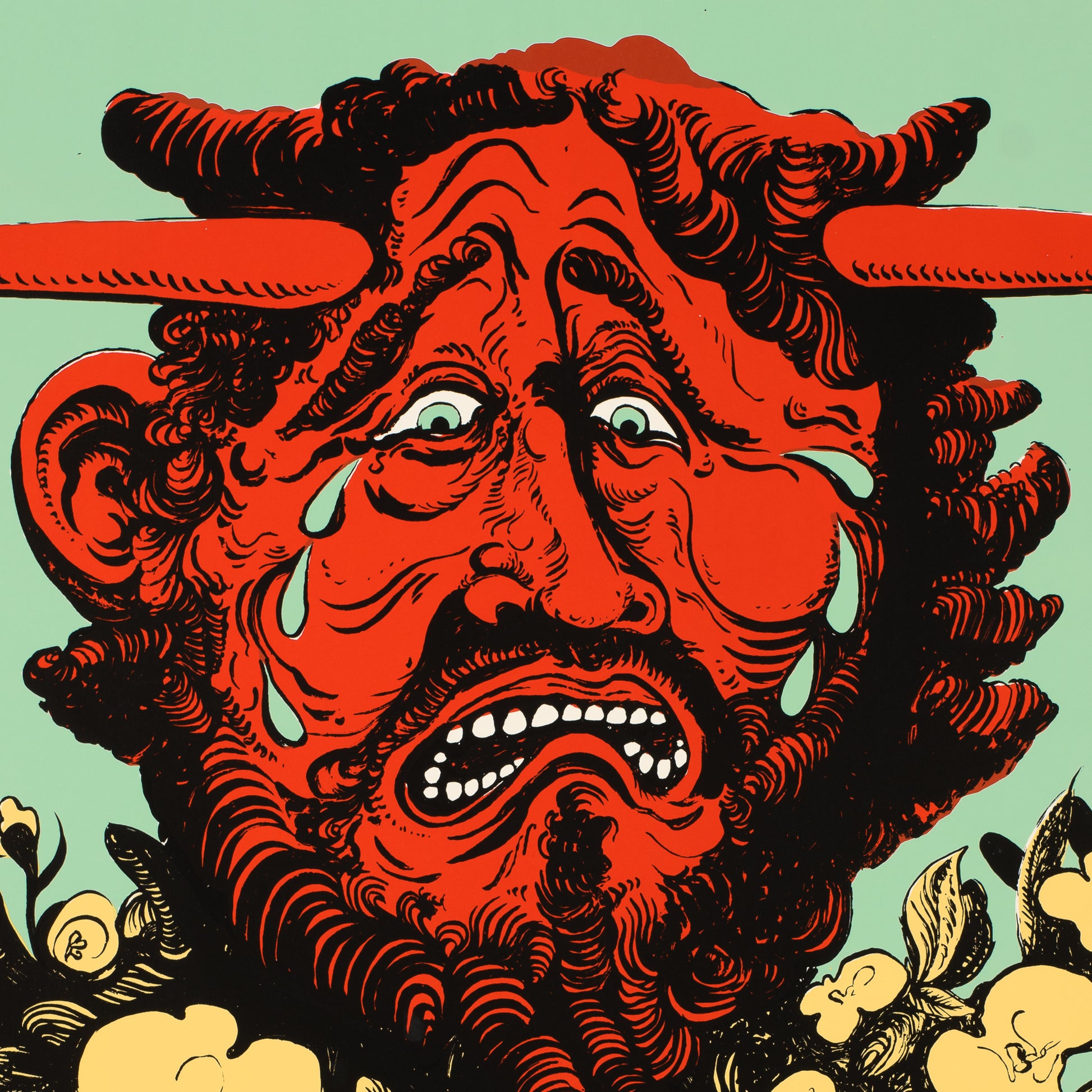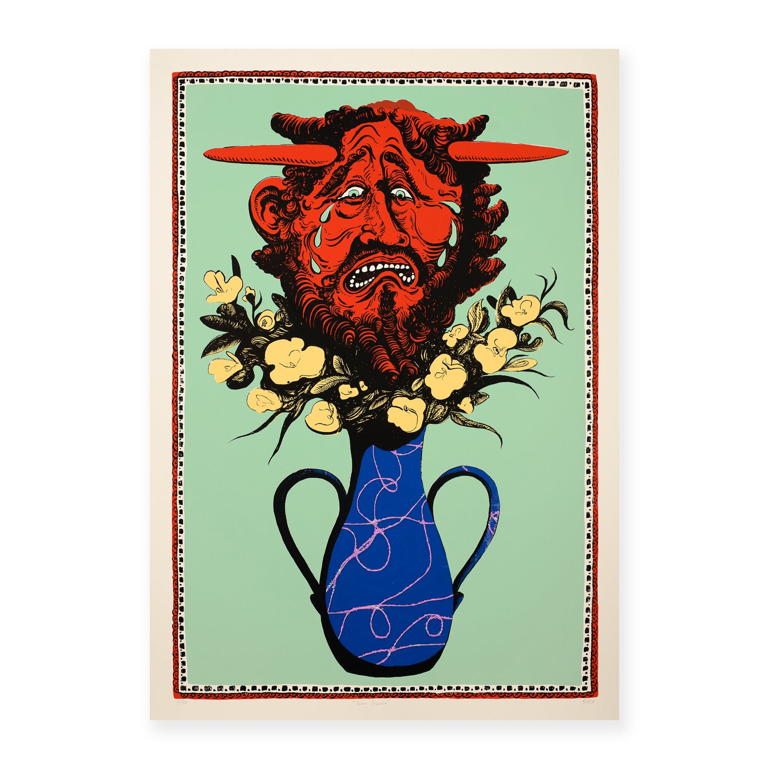 This screenprint by Ruco was born from the artist’s passion for the aesthetics of the grotesque and developed from the characteristic research related to the world of masks.