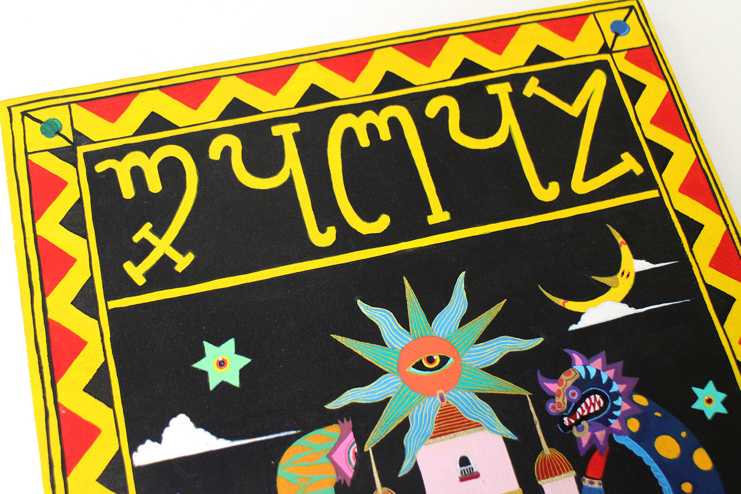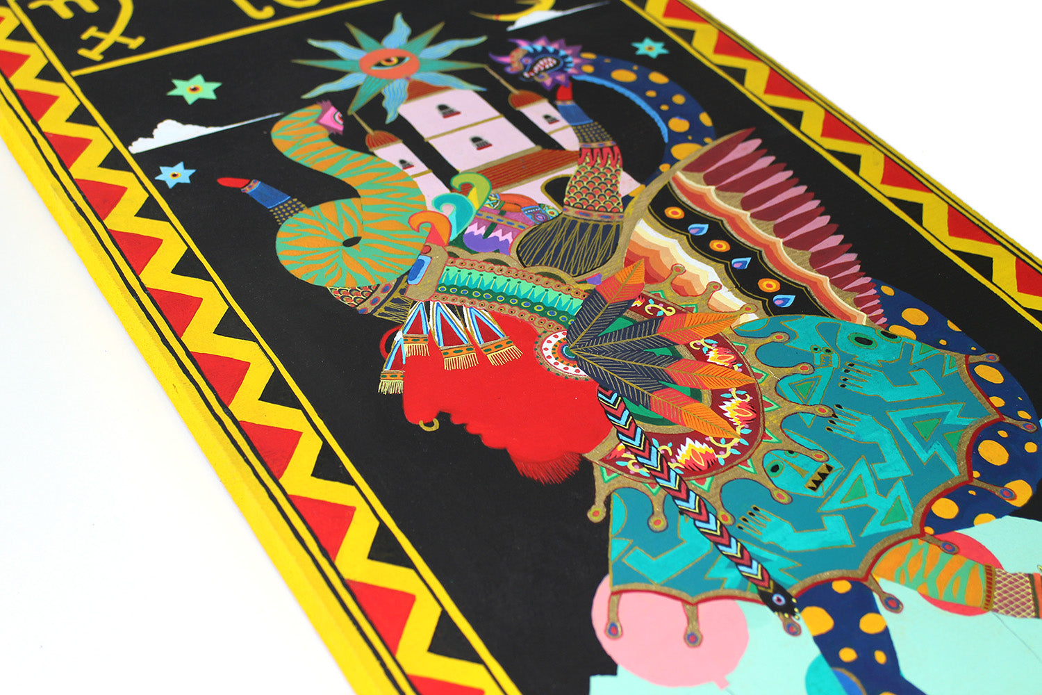 Pakal’s uses of vivid colours and mixed media along with the mysterious background and connection with the Far East and Indigenous art of Central American add to the intrigue in the artwork.