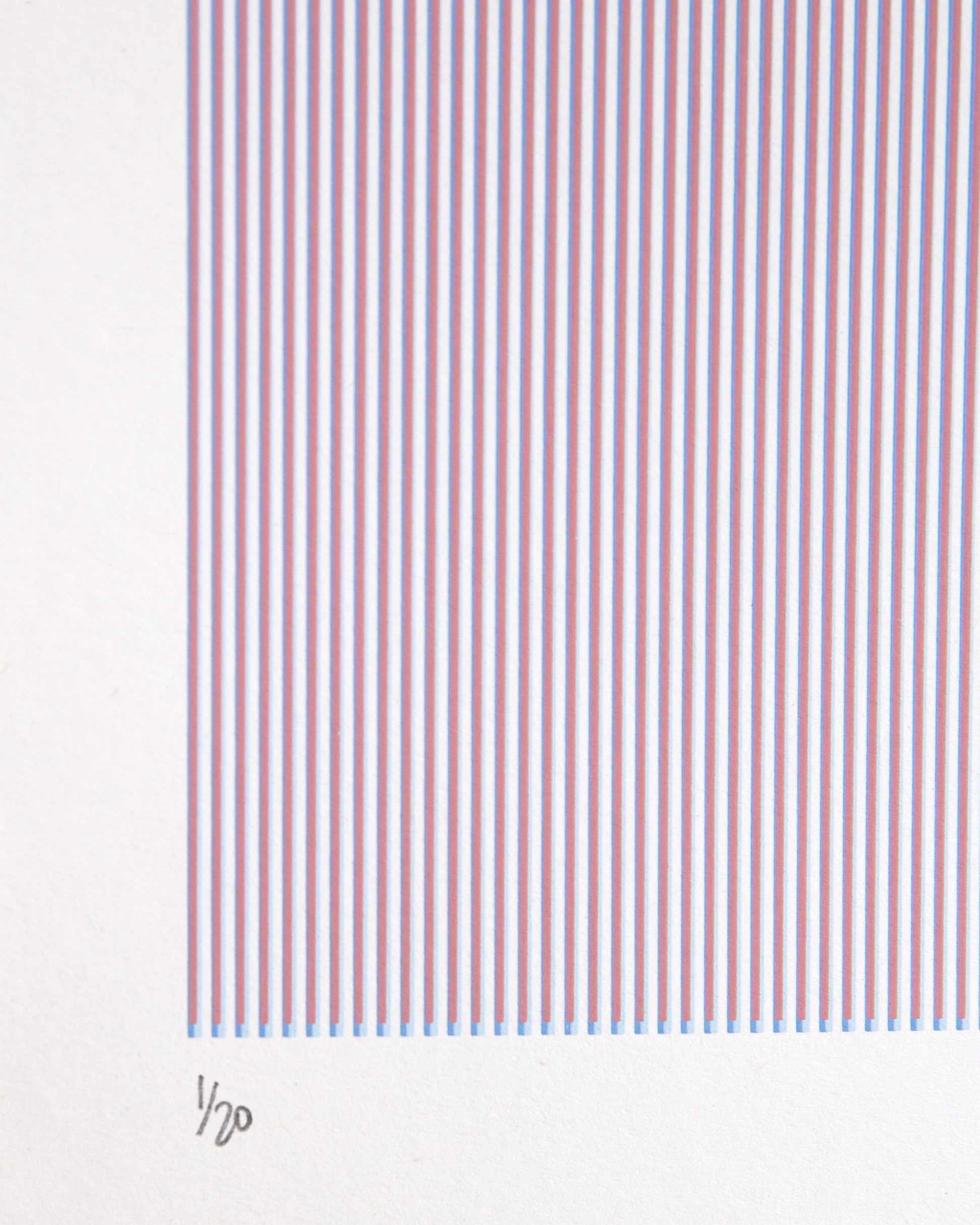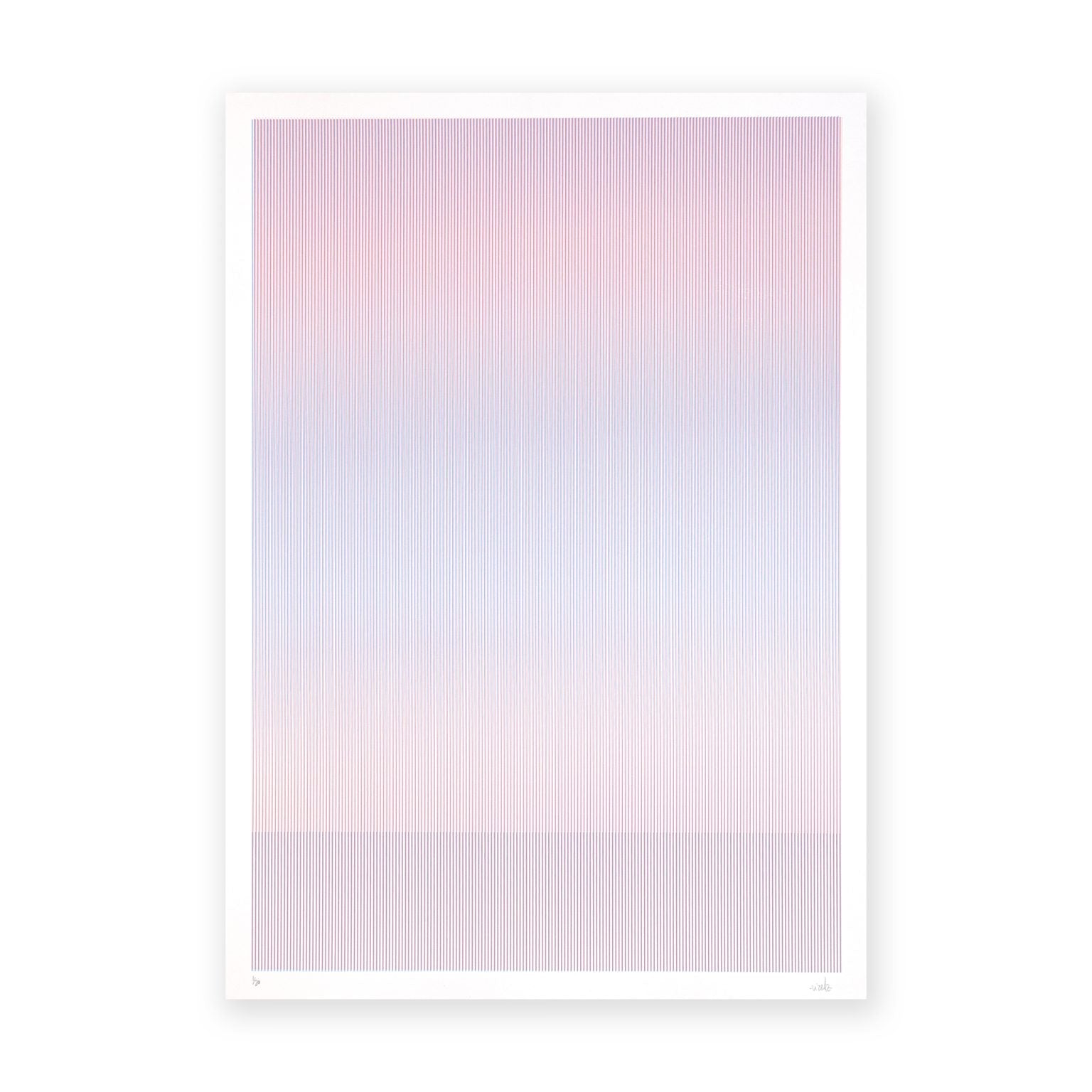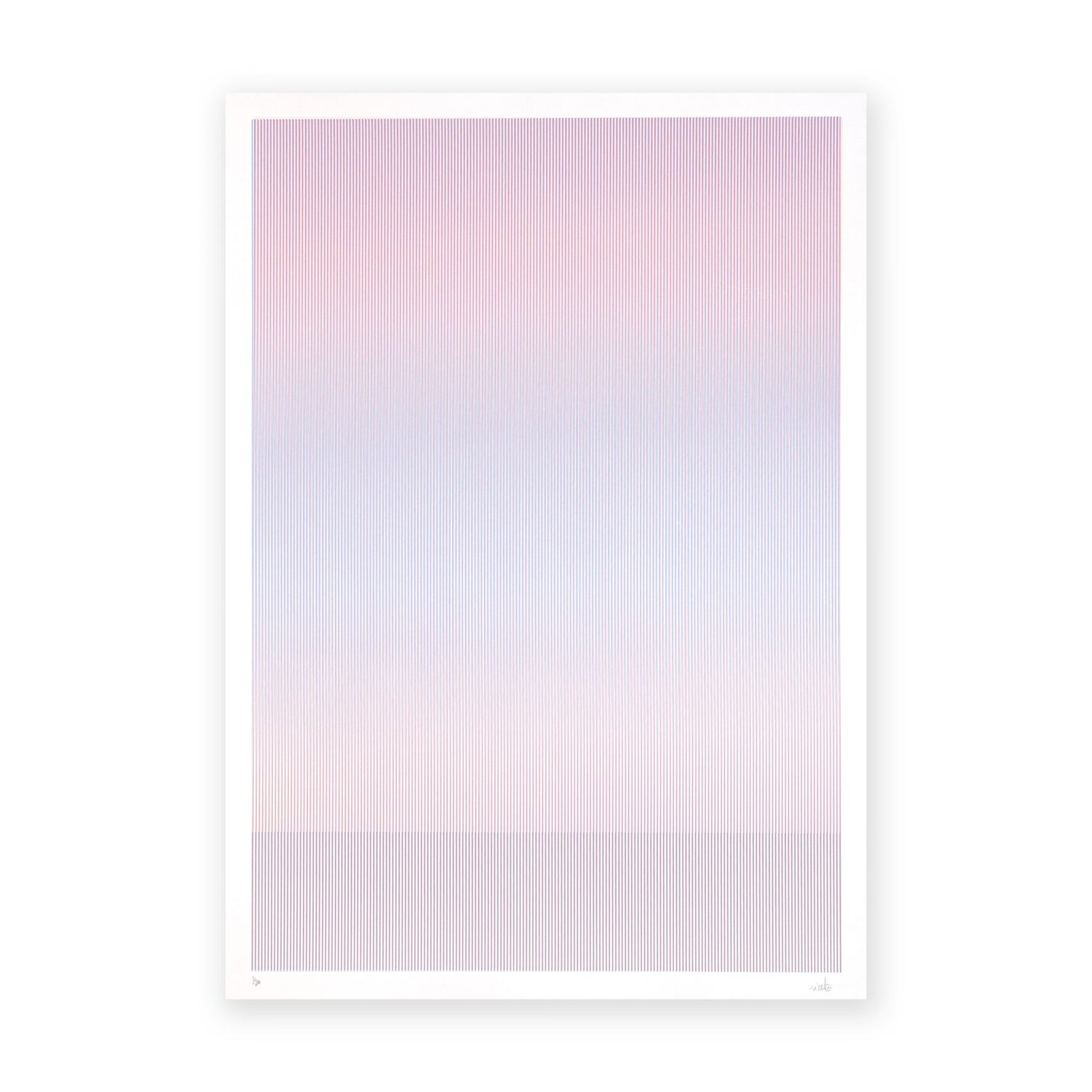 Hence, two projects are born. The first one follows the experience of the series “Mathematical View”; it was born as an extension of the reflection about the complex relationship that exists between human beings and the rules of nature, whose language is encoded by geometry. The artist’s goal is to achieve a pictorial result, thus influenced by human instinct and its randomness, using the strict rules of geometry. Then, composing lines of colors overlap and blend with each other, creating color shades that elicit a feeling of visual completeness like that from the light that becomes dim at dawn and dusk.